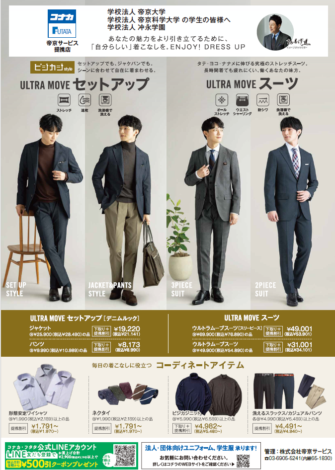 スーツ優待割引のお知らせ(学生向け・教職員向け最新!クーポンデータ更新)
